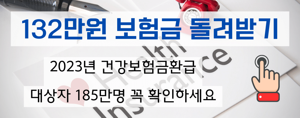 23년에는 186만명이 평균 132만원 돌려받는다고 합니다. 신청해야만 환급받으니 건강보험료환급금 조회하시길 바랍니다.